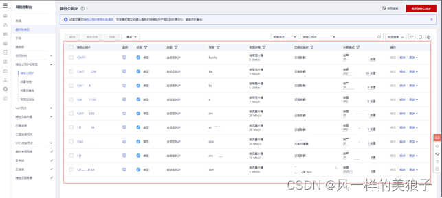 - 申请弹性公网IP和带宽