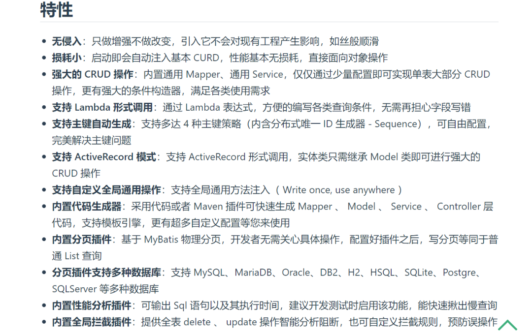 官方总结了下mybatis-plus的特性,在这里贴出来给大家看看,如果想了解更多请移步至官网。