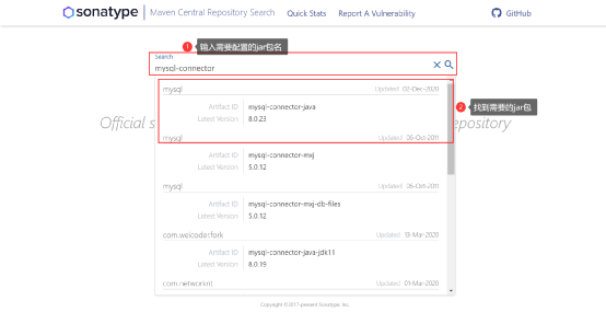 1)maven官网为我们提供了jar包在pom文件中的配置方式,打开官网:https://search.maven.org/,我们在输入框中输入需要配置的jar包名,如下: