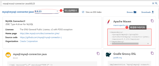 可以在左边框中的下拉列表里选择版本,在右边的Apache Maven下面,复制所有代码。