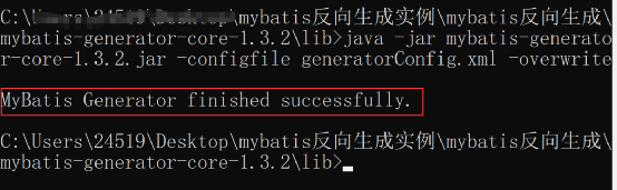 打开文件中的cmd.bat批处理,双击进入之后自己会定位当前所在的目录,然后输入:java -jar mybatis-generator-core-1.3.2.jar -configfile generatorConfig.xml -overwrite 回车即可。