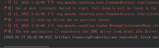 报错内容为:Artifact FinancingProductSys:war exploded2: Error during artifact deployment. See server log for details. 当时没仔细看控制台信息,只看到最后一行是这个错误,然后就开始按照前天的推文 ,一遍又一遍的解决,然而并没有什么用,难道是项目的问题?删了再建,问题依旧存在。