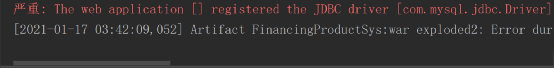 慢慢的往上翻,看到了一行这个严重:The web application [] registered the JDBC driver [com.mysql.jdbc.Driver] but failed to unregister it when the web application was stopped. To prevent a memory leak, the JDBC Driver has been forcibly unregistered.在网上大致的搜了搜,什么解决方法都有,我没太注意,坚信我的错与这个无关。