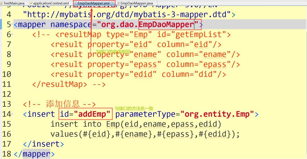 <bean id="empDao" class="org.mybatis.spring.mapper.MapperScannerConfigurer">