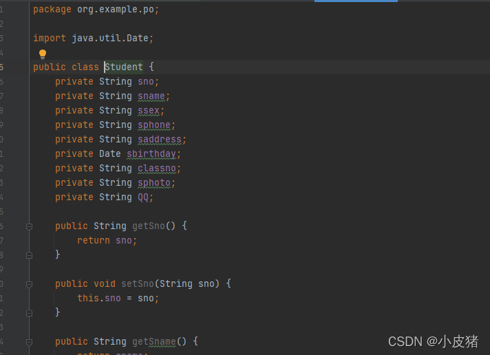 使用到的是学生表,持久化Student类,使用注解方式试用一下。