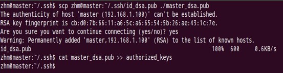 为了实现这个功能,两个slave结点的公钥文件中必须要包含主结点的公钥信息,这样