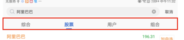 - 在页面中有很多标签页(例如综合、股票、用户、组合):
