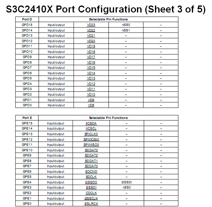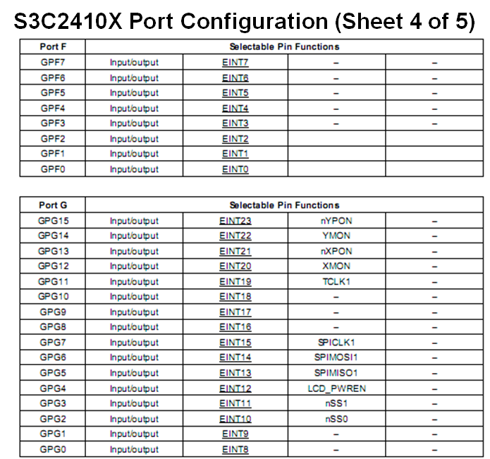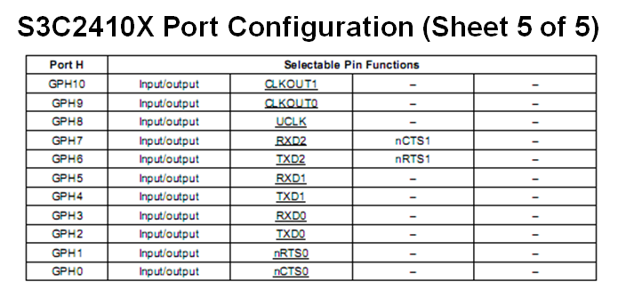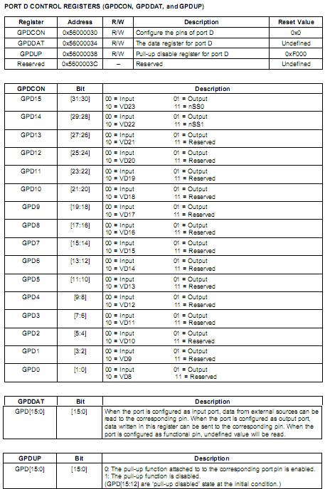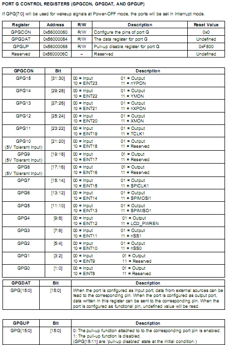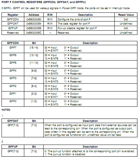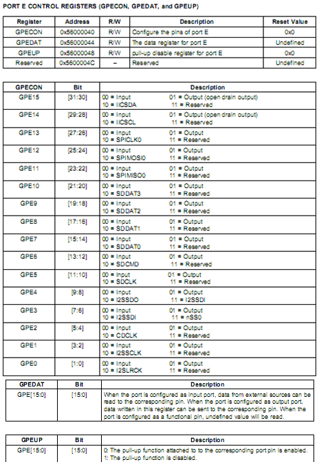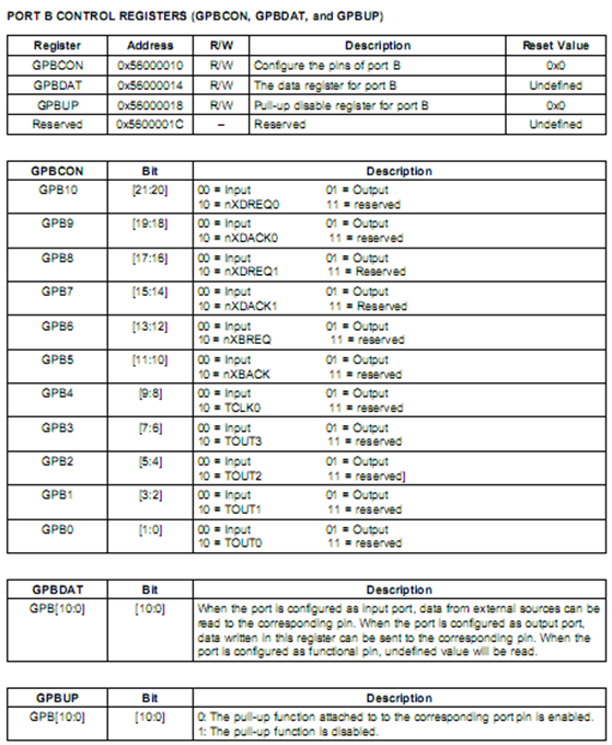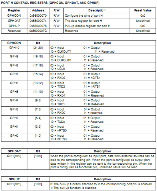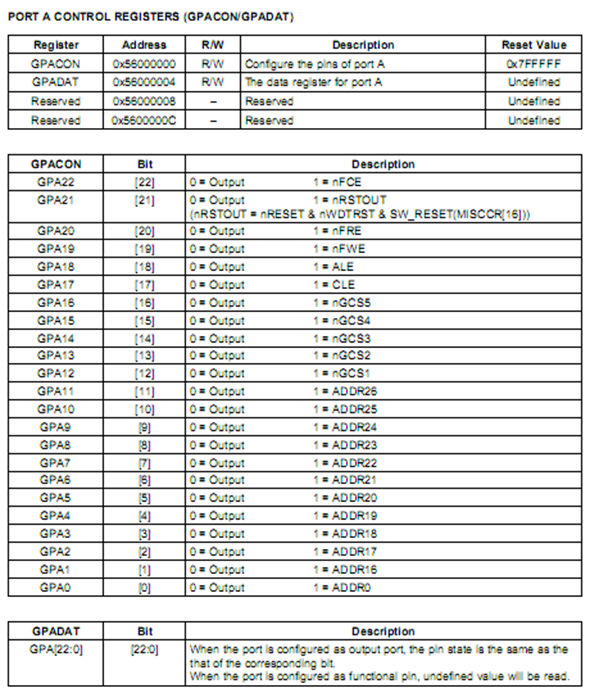S3C2410大部分引脚是复用的,在使用这些引脚之前,需要定义其中的一个功能,这个端口控制寄存器就是实现该功能的。