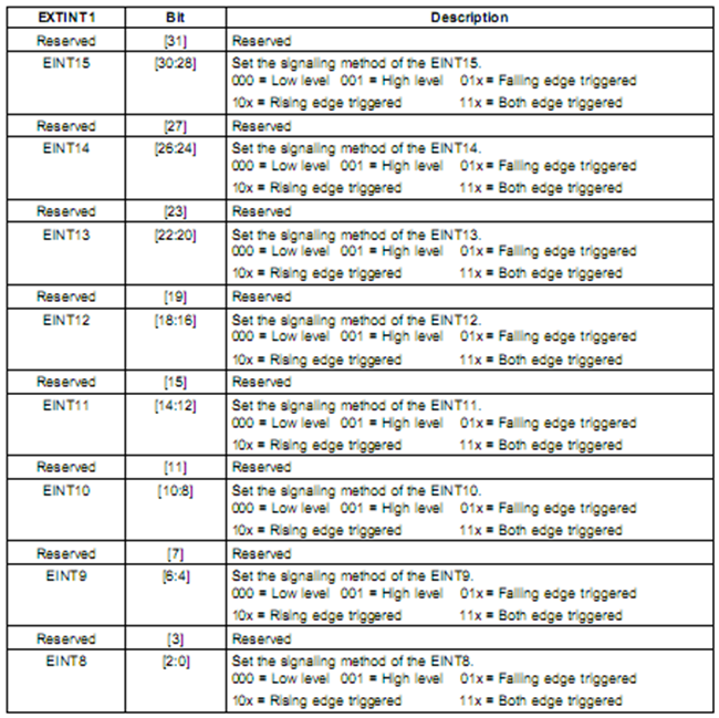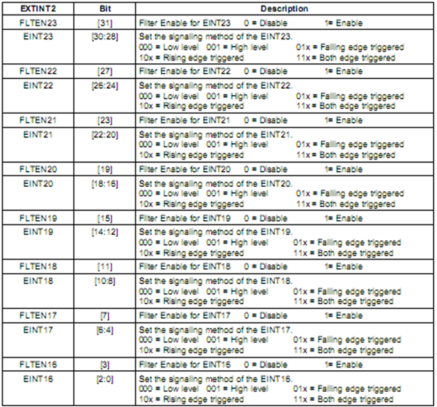 用来配置24个外部中断请求信号的触发方式(电平、边沿)