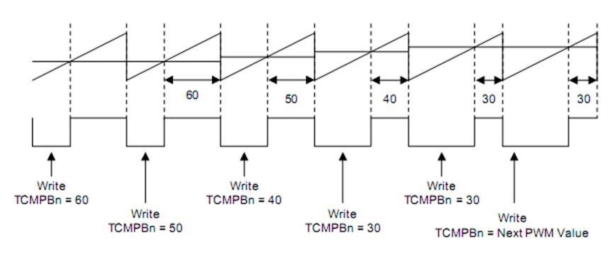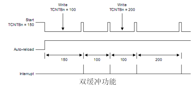 TCNTBn和TCMPBn的双缓冲特性,使得定时器在频率和占空比改变时,也能产生稳定的输出。
