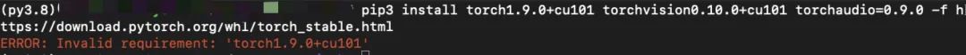 pip3 install torch1.9.0+cu101 torchvision0.10.0+cu101 torchaudio=0.9.0 -f