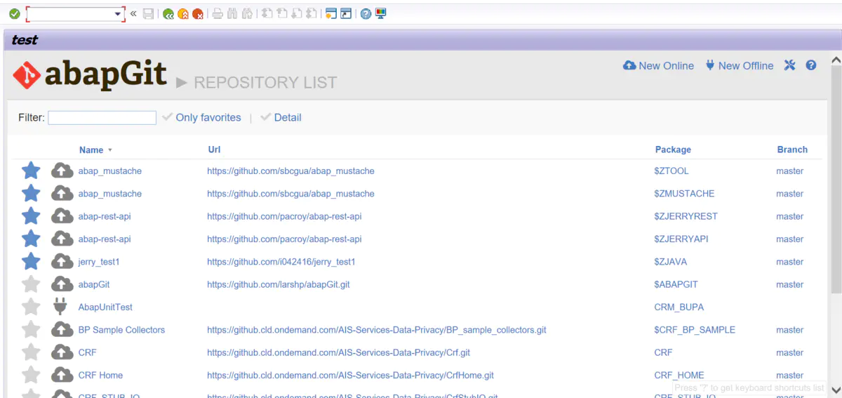 如果你的ABAP系统没有abapGit这个客户端,需要先进行安装,其实就是新建一个报表,再将这个 Github仓库里的abapGit源代码拷贝到报表里,激活即可。