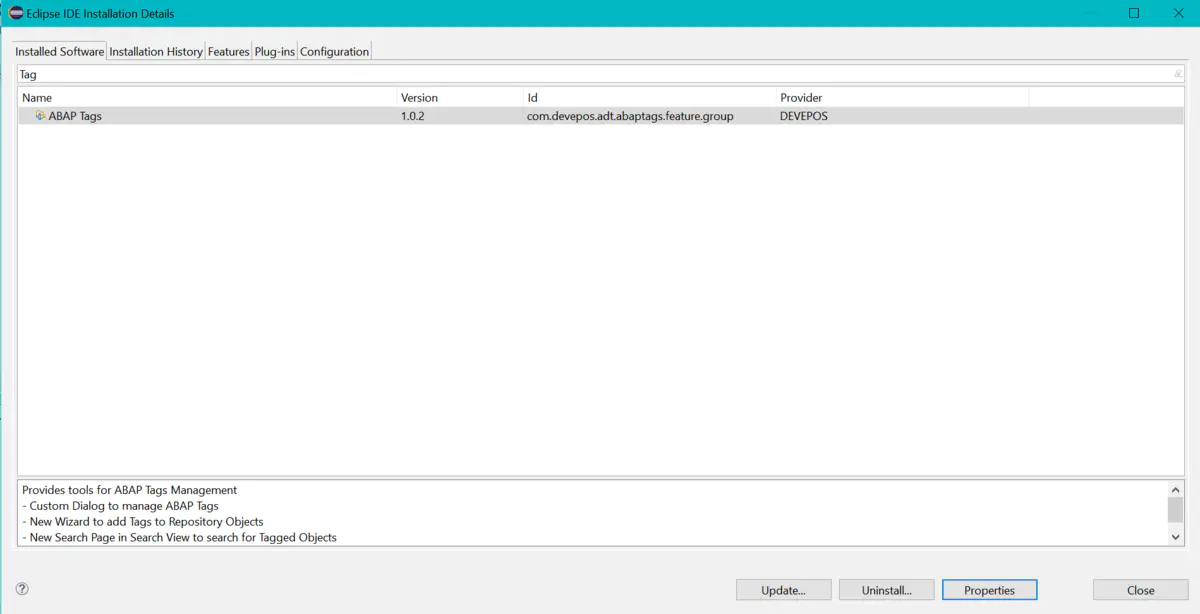 因此这个标签管理功能我们需要分别安装ABAP Development Tool前后台对应的增强。