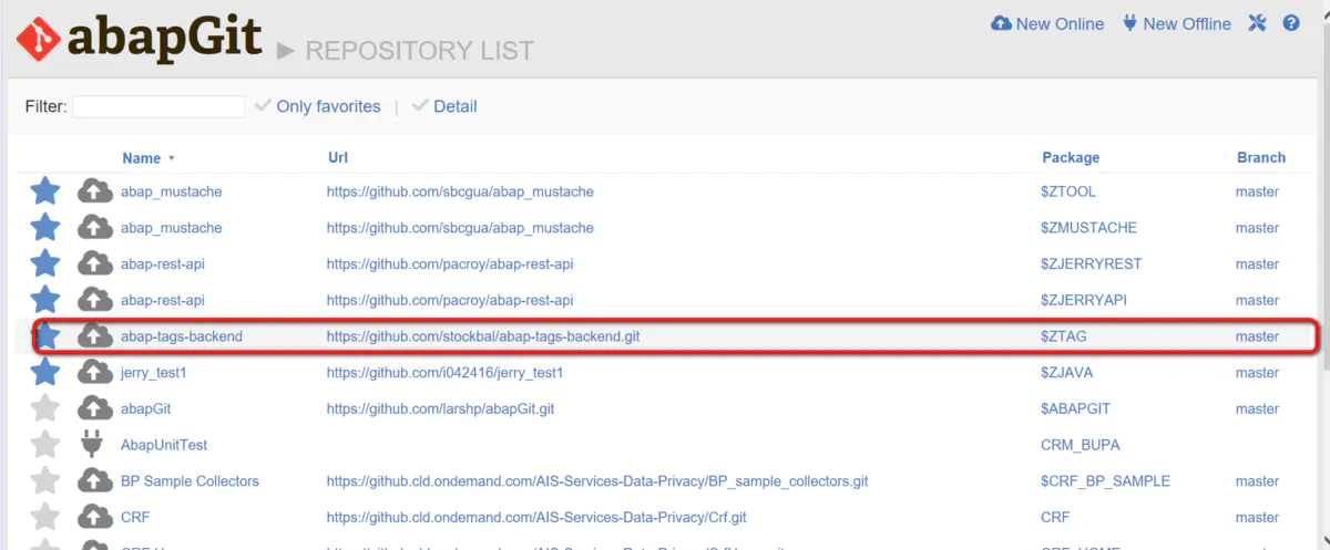然后在当前的abapGit客户端内,已经可以看到abap-tags-backend这个Github仓库了: