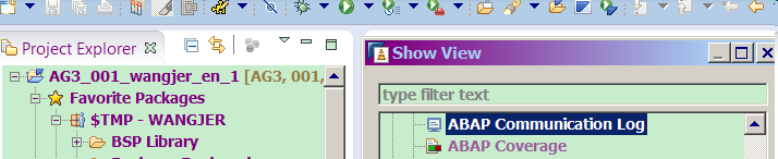 单击 Windows-> 显示视图。 显示 ABAP 通信日志视图。