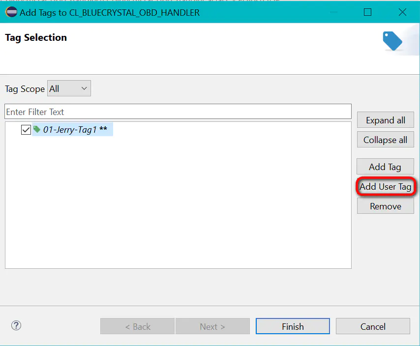 通过 Add Tag 和 Add User Tag按钮管理标签结构,每个ABAP系统都有一个全局的标签系统(Global Tag), 这些标签在同一ABAP系统里所有登录用户均可见。也可以创建只有自己可见的User Tag: