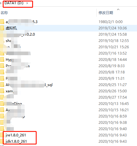 双击安装文件,按照提示,可以一步步安装,中间会有两次选择安装路径,第一次是安装Jre,第二次是安装Jdk,两次的安装目录,建议单独放在一个磁盘的根目录,如下,笔者的是:D:jre1.8.0_261和jdk1.8.0_261