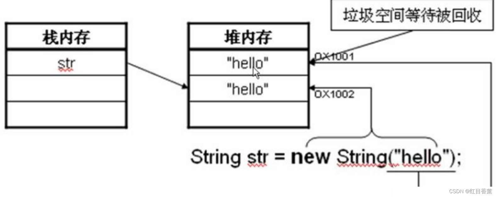 两者看似都是创建了一个字符串对象,但在内存中确是各有各的想法。