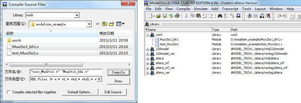 使用软件ModelSim-Altera 6.5b Starter Edition 进行仿真验证的大致过程