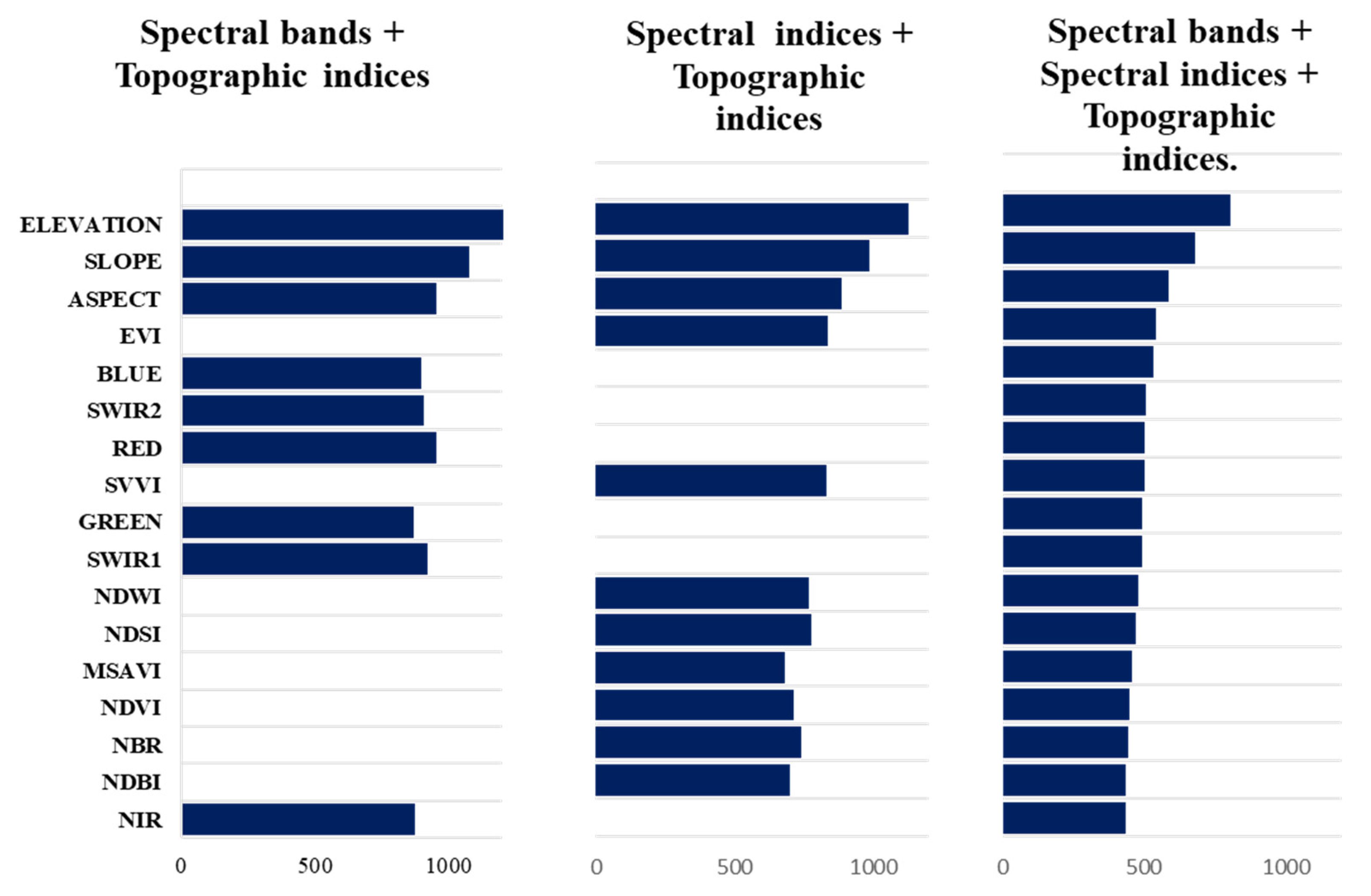 不同波段组合(变量)产生的分类结果重要性的差异: