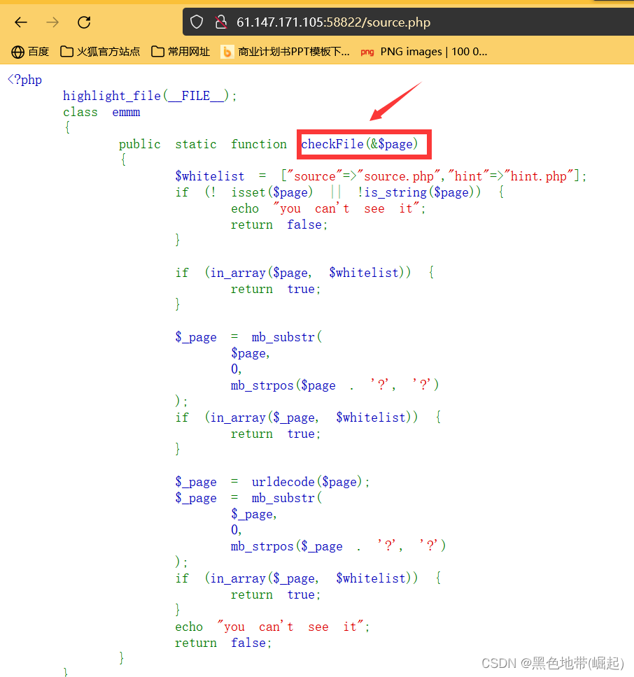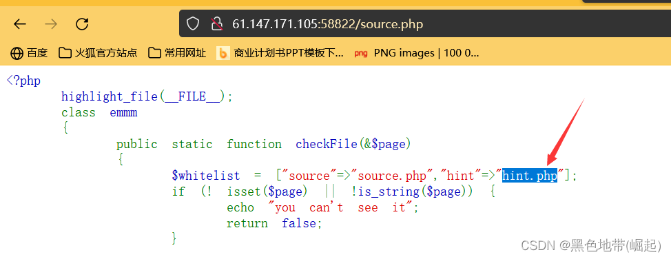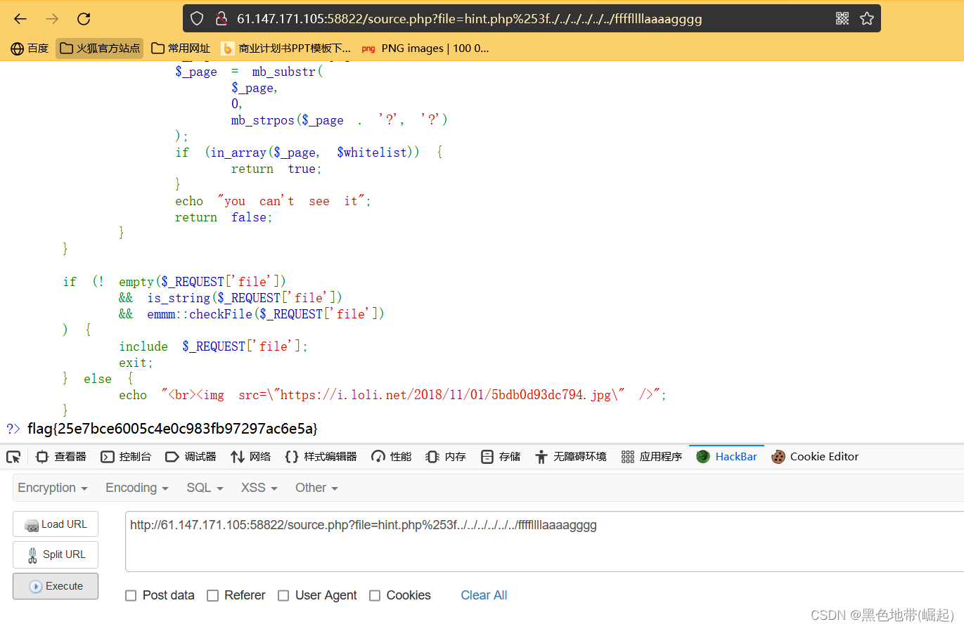 (第一个?用来传参,第二个?用来截断前面的,source.php是在$whitelist中的)