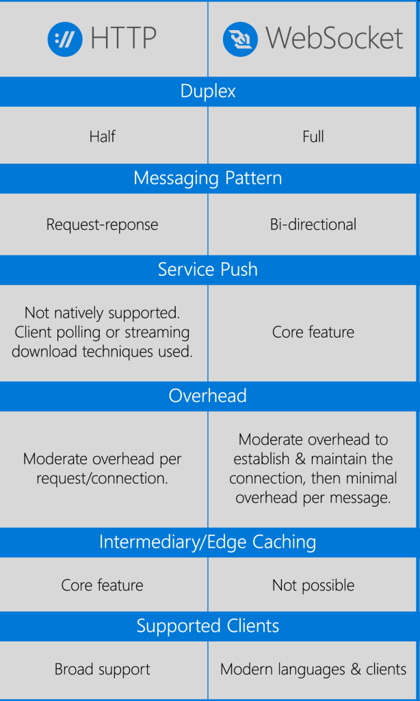WebSocket 基于 TCP 连接,在服务器和浏览器间提供了全双工通信功能,即服务器可以主动推送数据到浏览器端,而这在 HTTP 协议中是不可能实现的,HTTP 协议只支持浏览器到服务器端的 Request - Response 方式,即浏览器客户端如果想查询服务器端是否有最新的事件发生,则只能采取低效的轮询方式进行。
