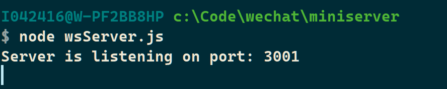 使用命令行 node wsServer.js 启动服务器端,看到如下输出:
