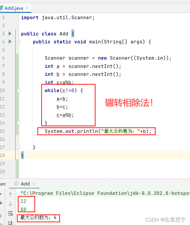注意,本文笔者创建了一个文件名,叫做:Add.java !请大家不要弄混肴!!要保持文件名与类名一致!