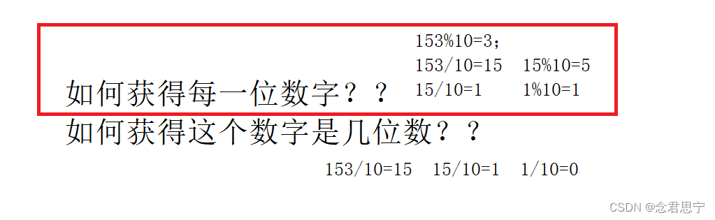 对于得到水仙花数,我们主要有两个难点!(以153为例!)
