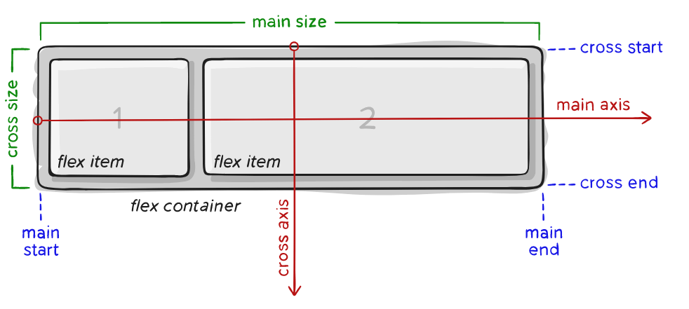 Flex 容器里的 items 元素,要么沿着 main 轴方向布局,要么沿着 cross 轴方向布局。