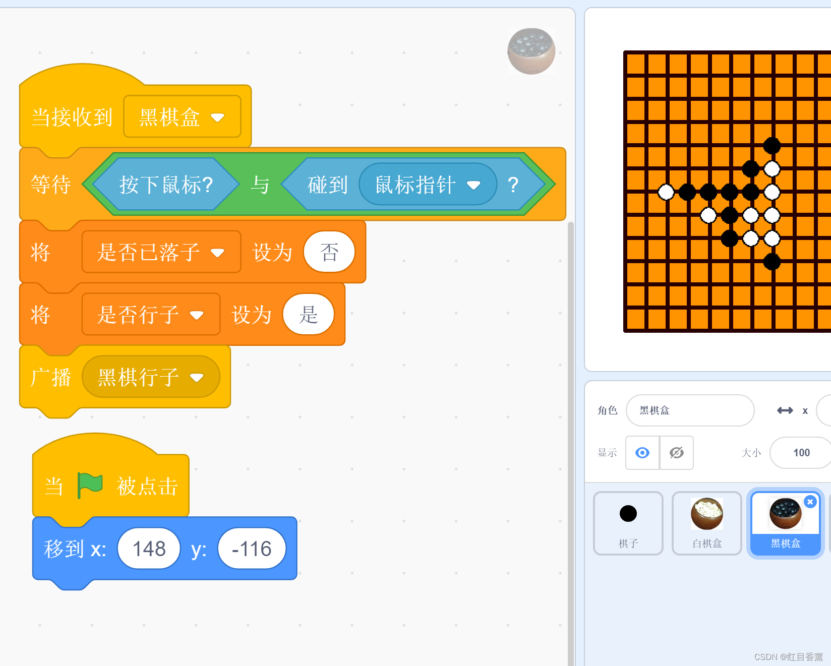 Scratch3.0——助力新进程序员理解程序(难度案例三、五子棋双人对战-电脑需要AI写不出来)