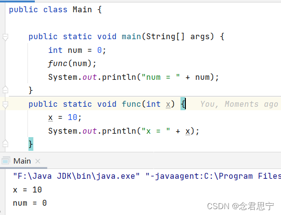 发现在func方法中修改形参 x 的值, 不影响实参的 num 值.
