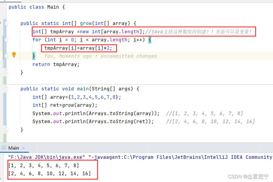 int[] tmpArray =new int[array.length];//java支持这种数组的创建!!里面可以是变量!