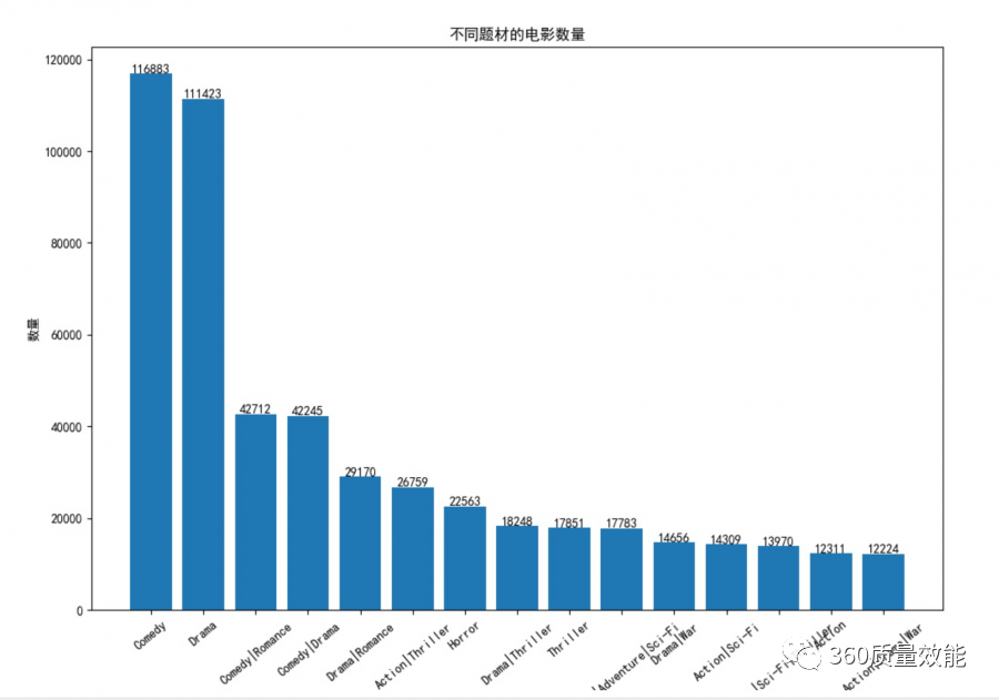 首先根据电影题材进行,然后选取票房最好的15个系列进行统计画图。