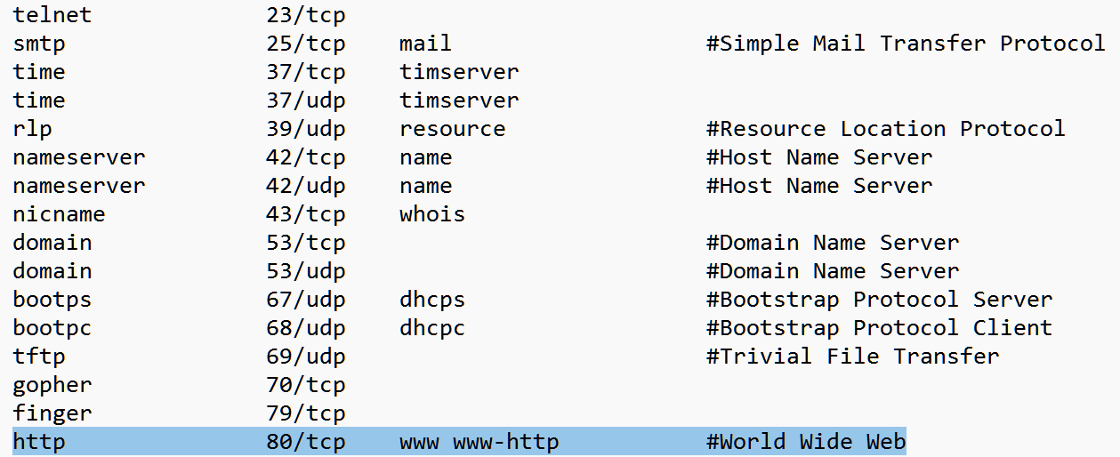 If not specified, http will be used. On windows machines, these services to their port mappings are stored on C:\windows\system32\drivers\etc\services.