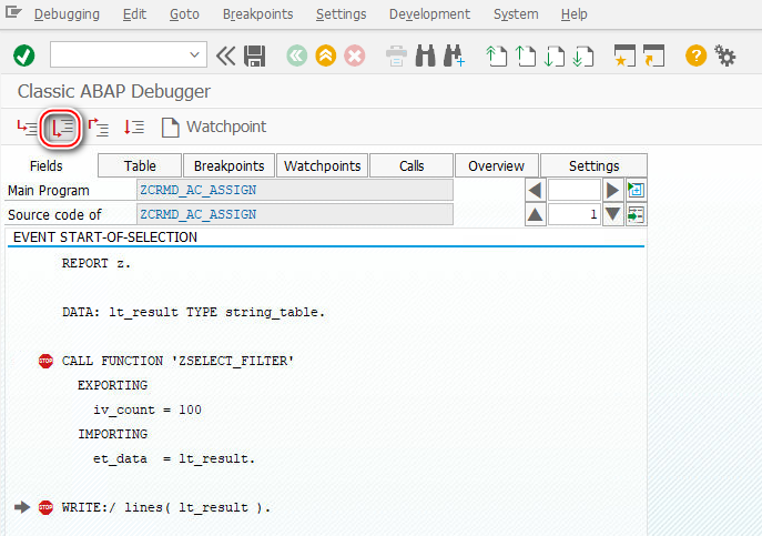 有关断点类型的更多信息,请参阅新的 ABAP 调试器。 请参阅新的和经典的 ABAP 调试器中的断点。