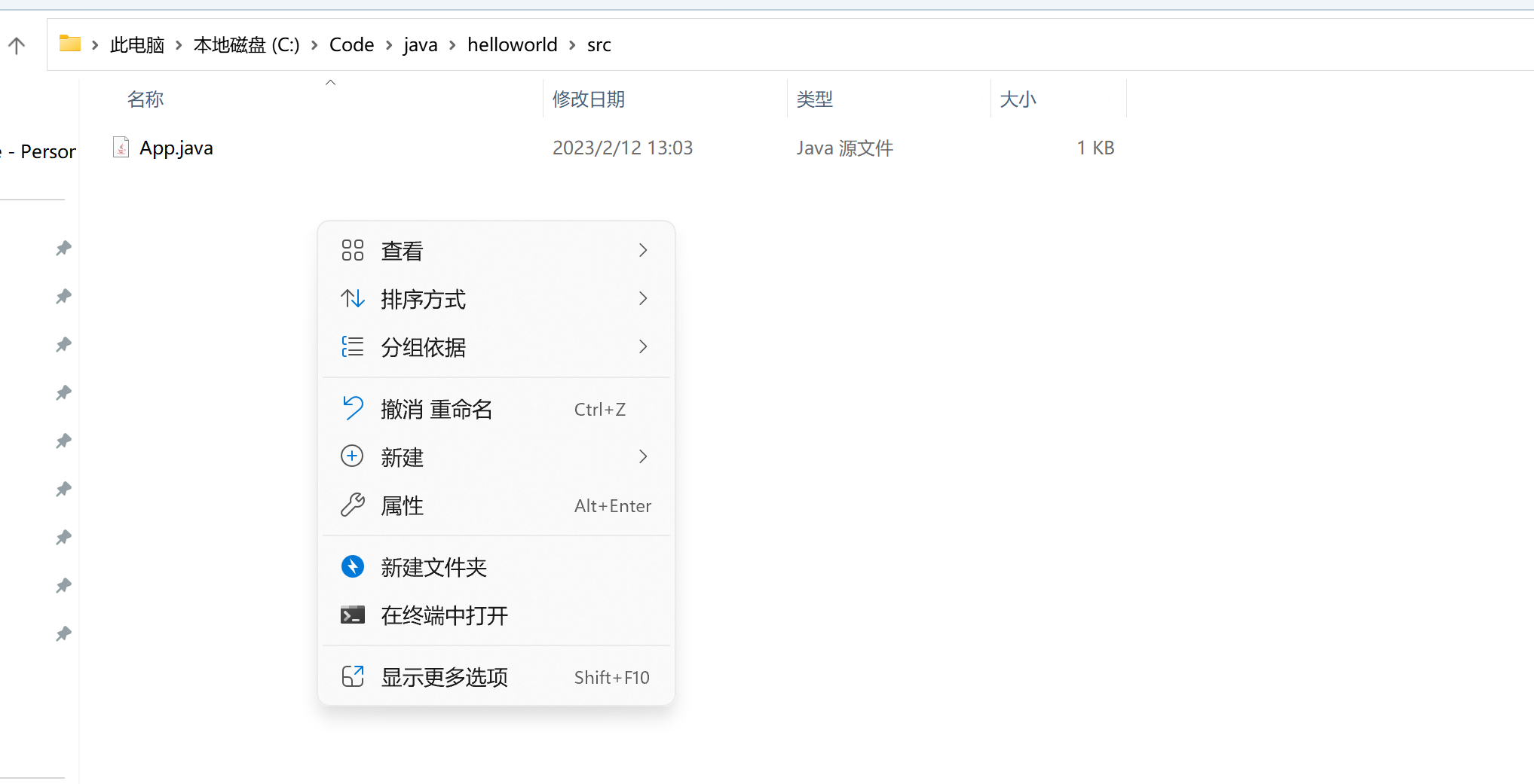 使用记事本创建一个App.java文件,文件名和类名必须一致,复制以下内容: