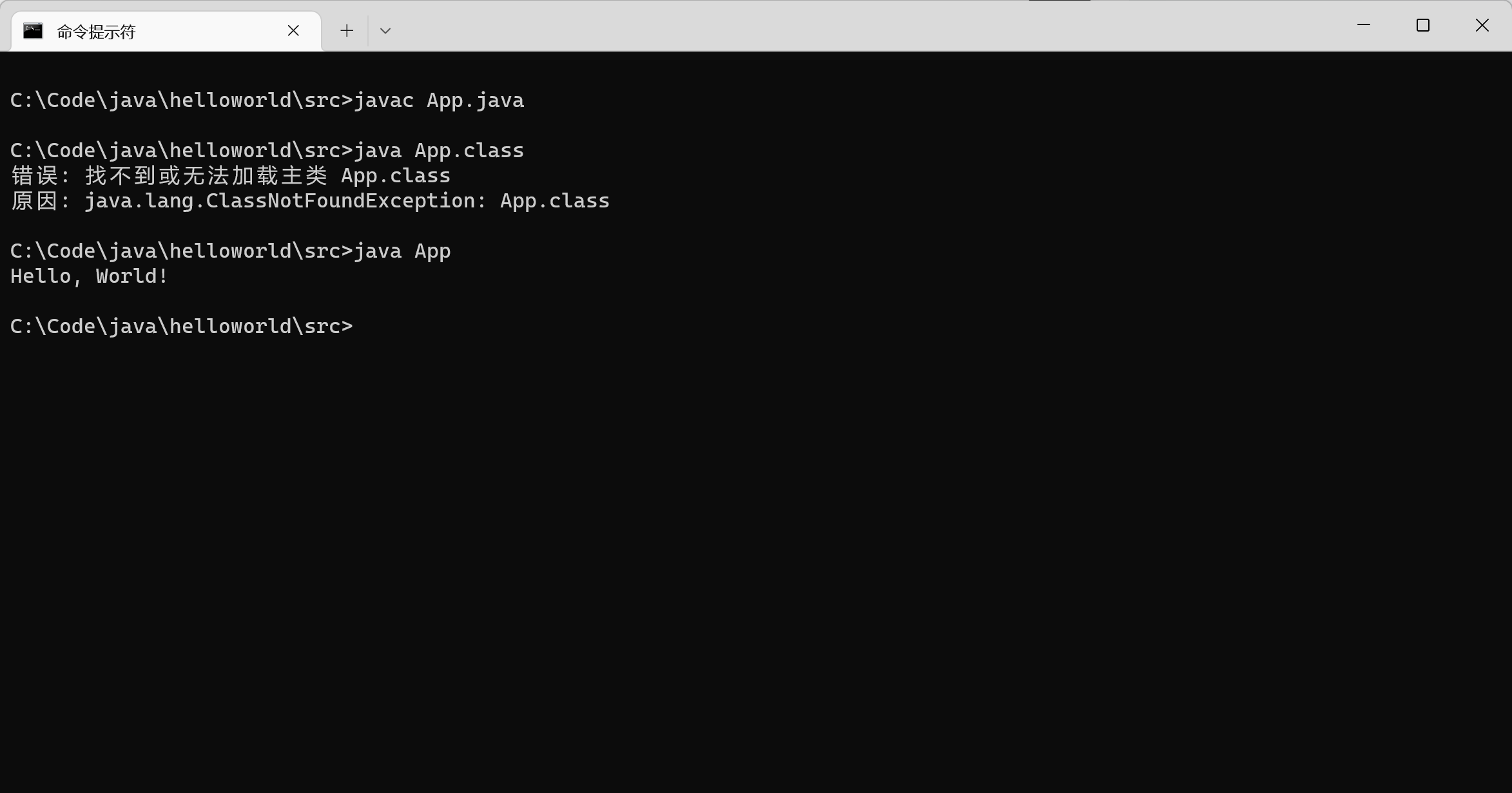 第一个Java程序的运行暂不借助编译器,使用JDK自带的编译工具进行编译
