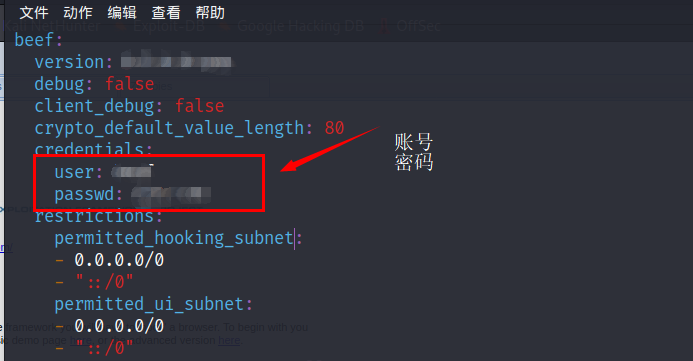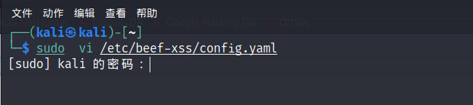 打开kali默认配置文件 一般/etc/beef-xss/config.yaml中