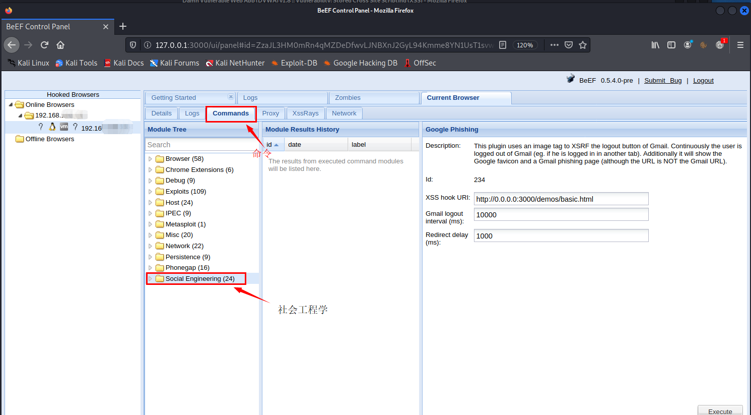 kali虚拟机“忘记BeEF账号密码(权限不足问题)”,BeEF的基本启动和使用,Hook使用方法及相关命令使用