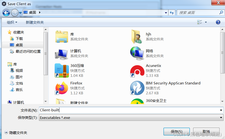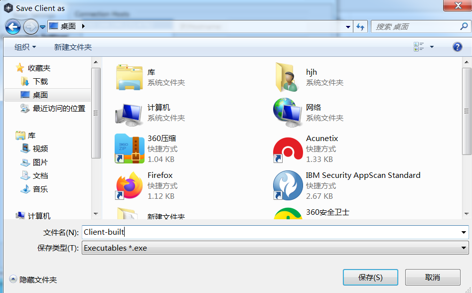 点击build client(构建客户,生成服务器),保存文件Client_Built到你自己指定的位置就可,便于展示我就放在桌面上