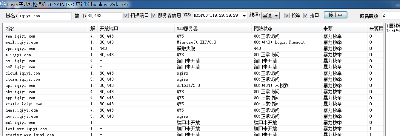 扫描出来了很多信息