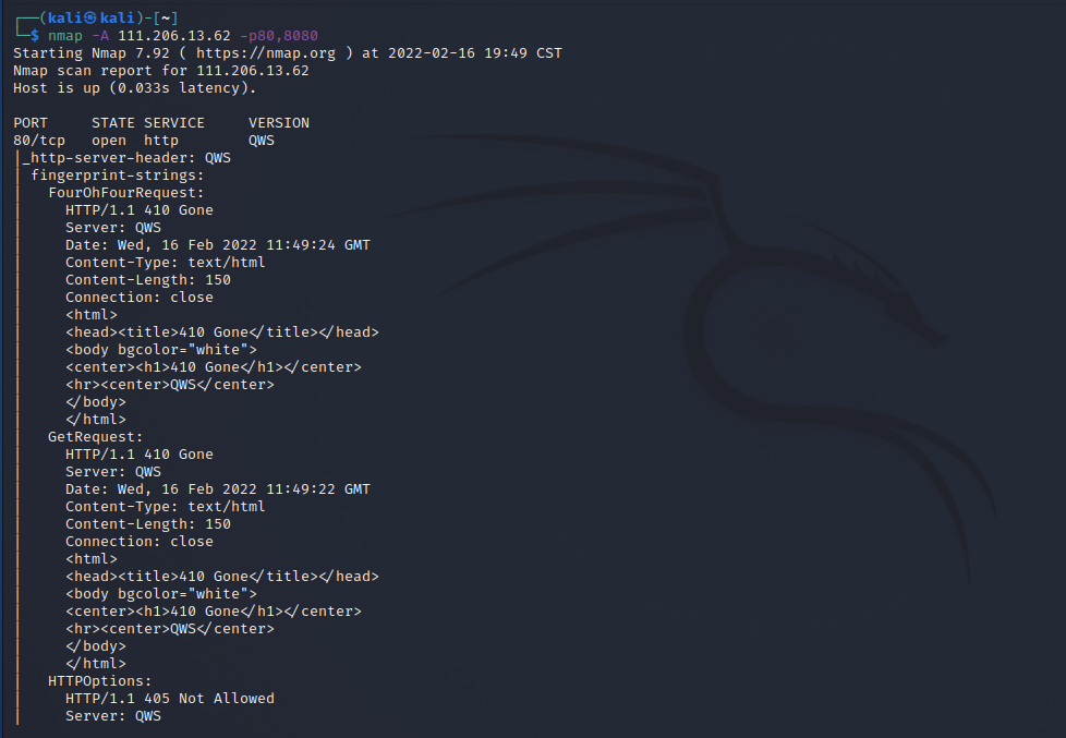 5.使用nmap进行对扫描出来的端口,再进行扫描,扫描出其他版本等信息