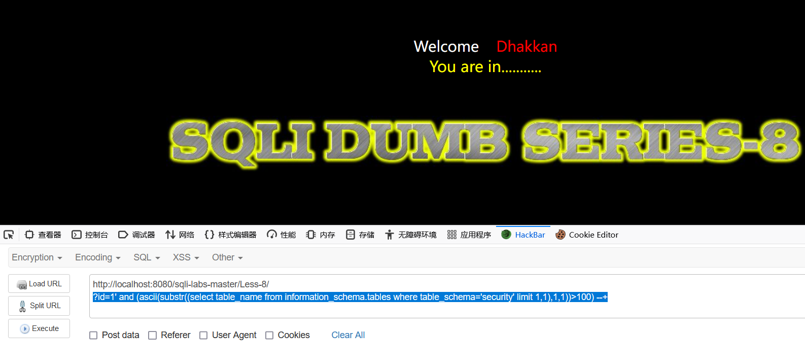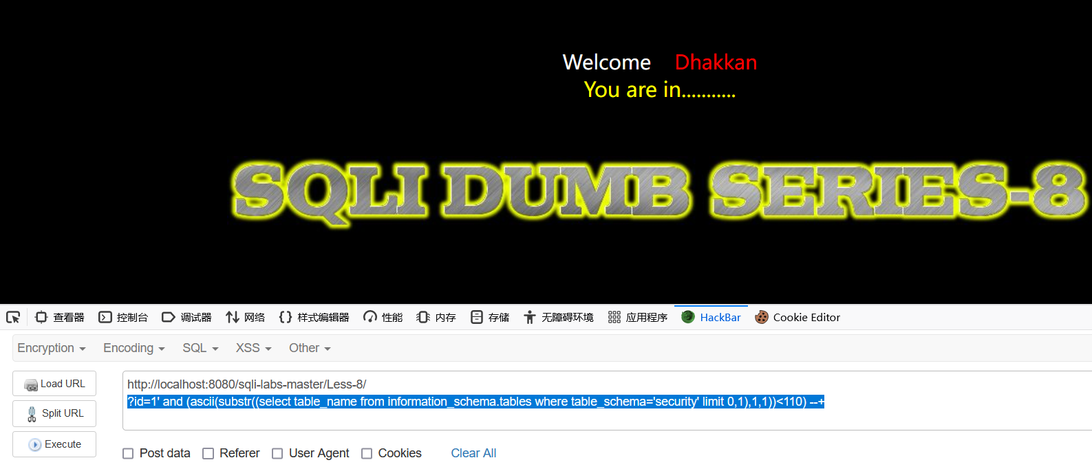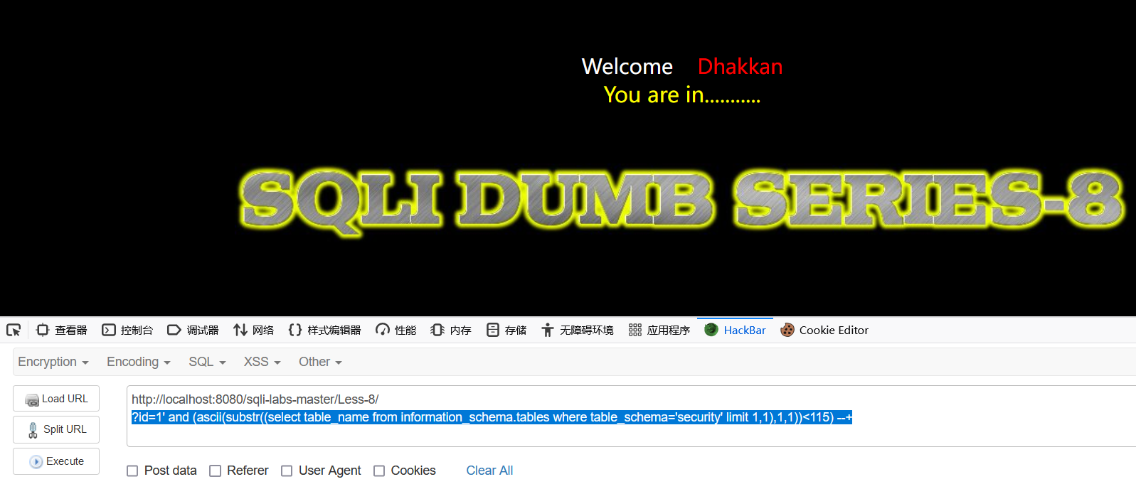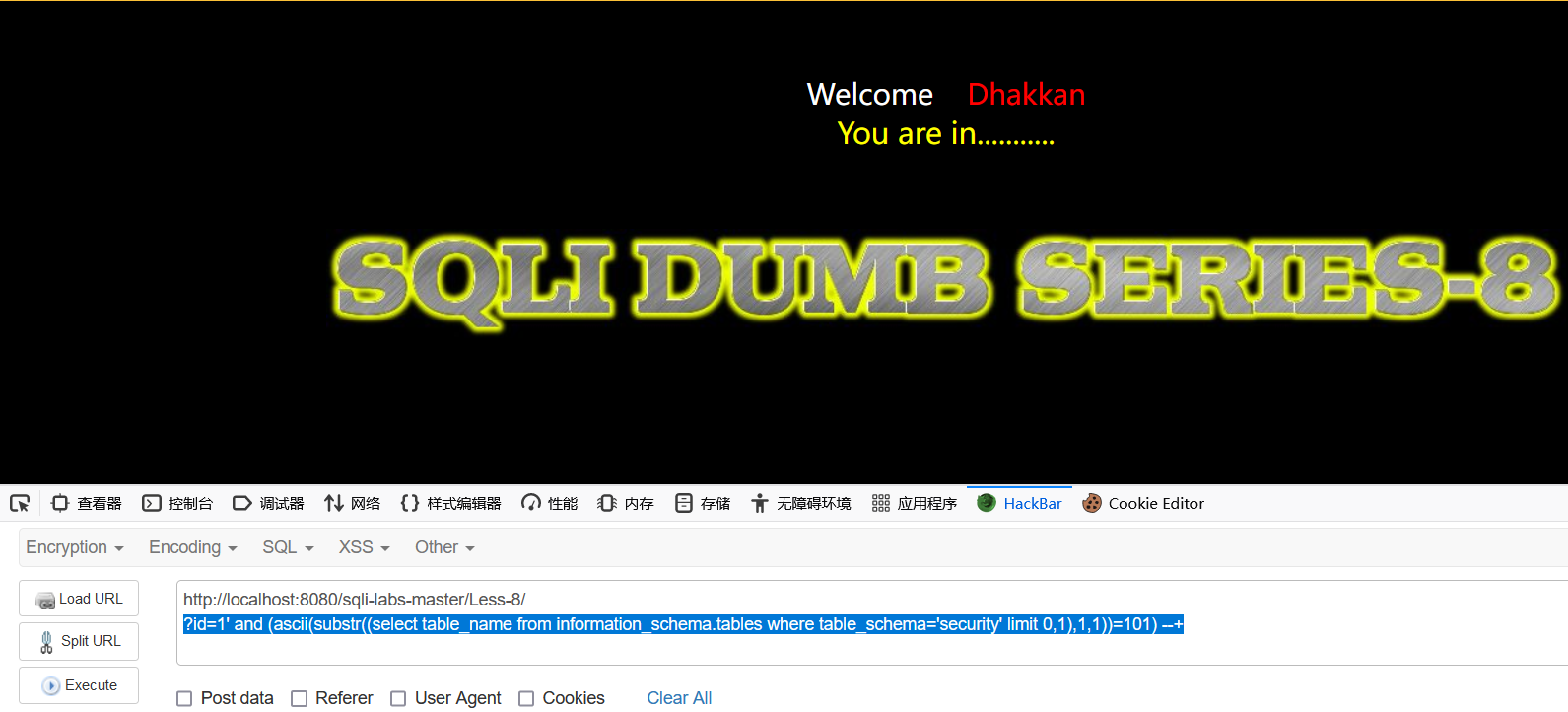 第四步:猜测数据库字母(或者得到ASCII,然后再对应得出字符)