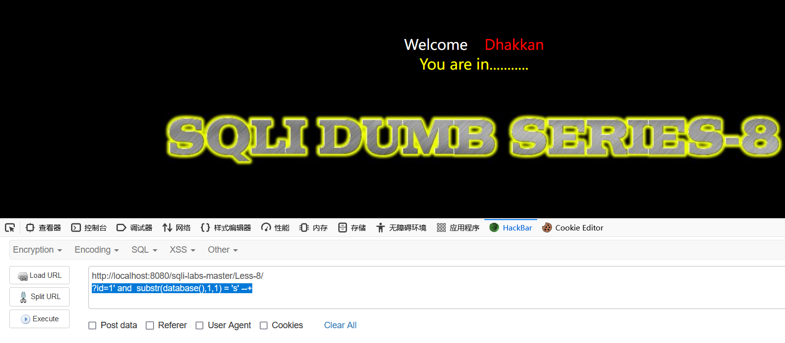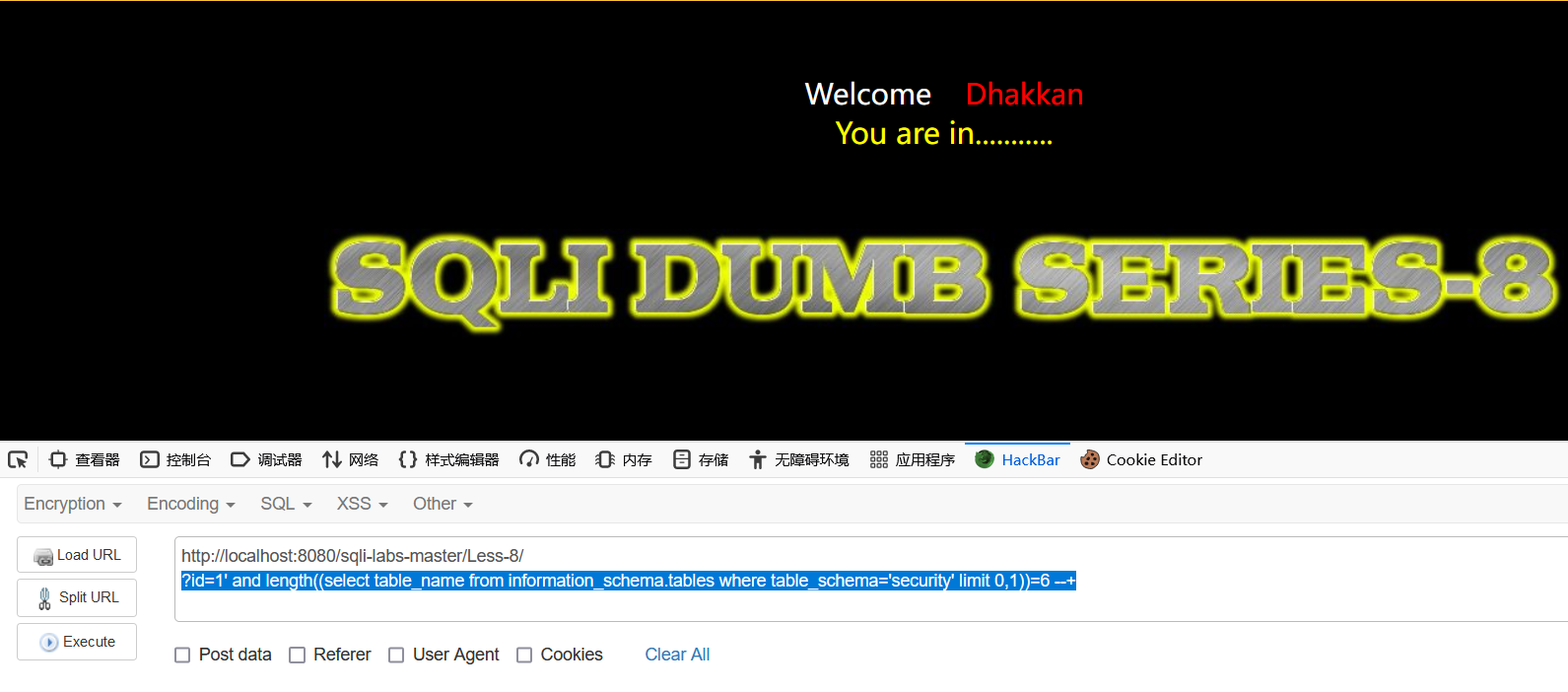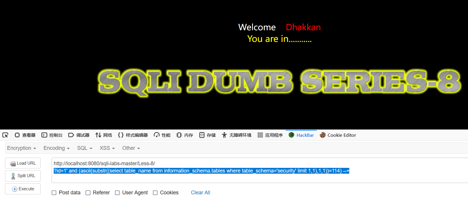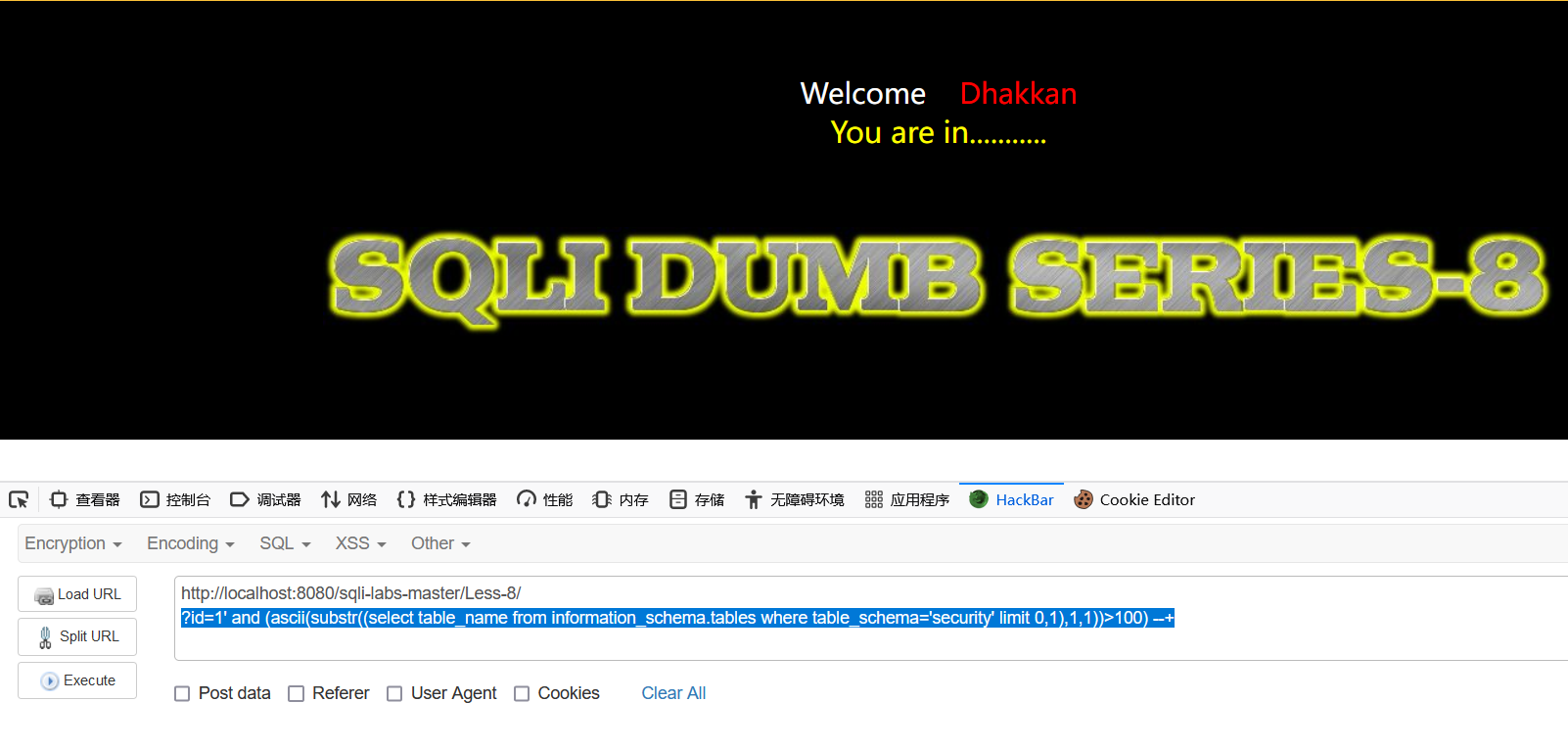 第四步:猜测数据库字母(或者得到ASCII,然后再对应得出字符)