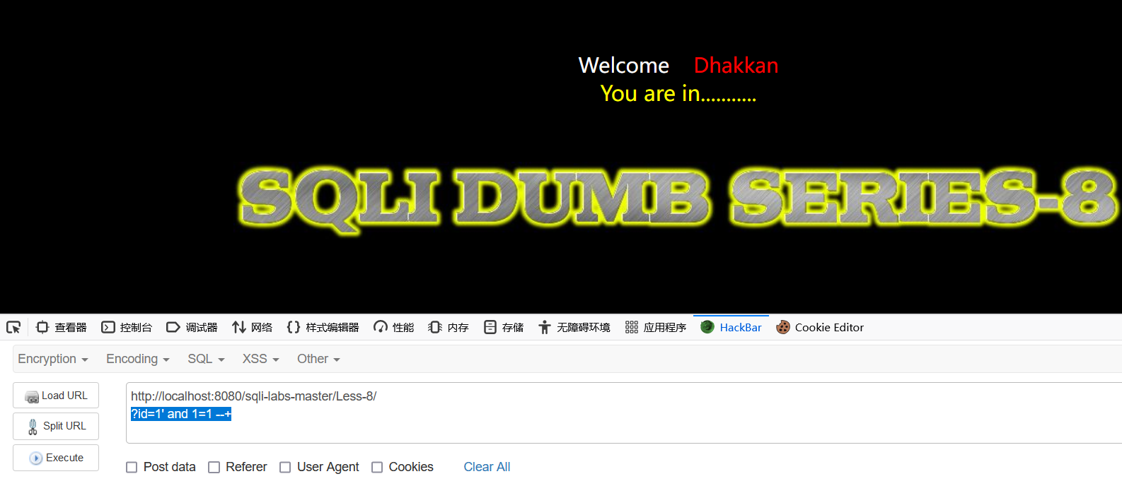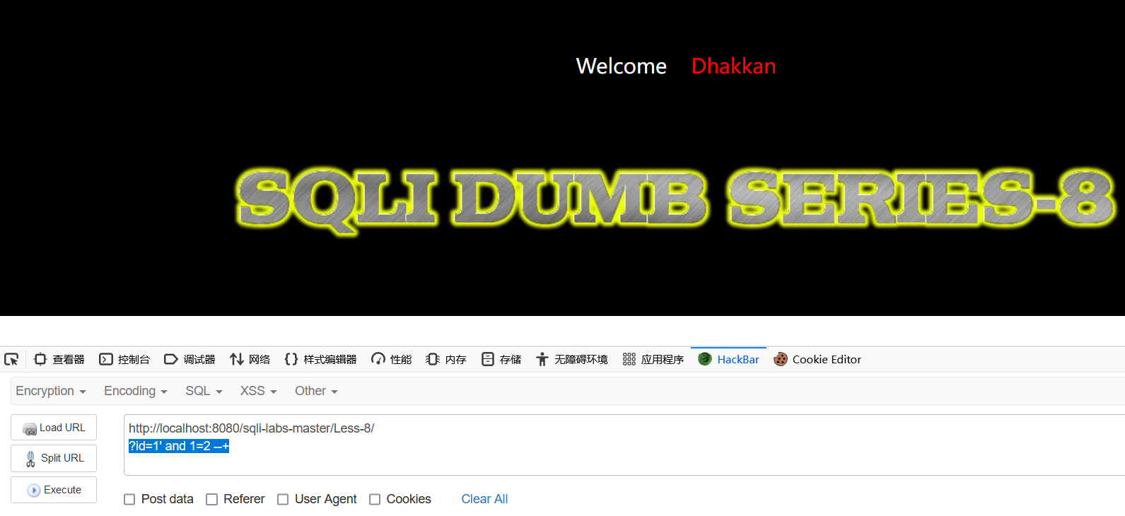 (?id=1回显正常,?id=1'回显错误,?id=1' 1=1--+ 回显正常,?id=1' 1=2 --+回显错误)
