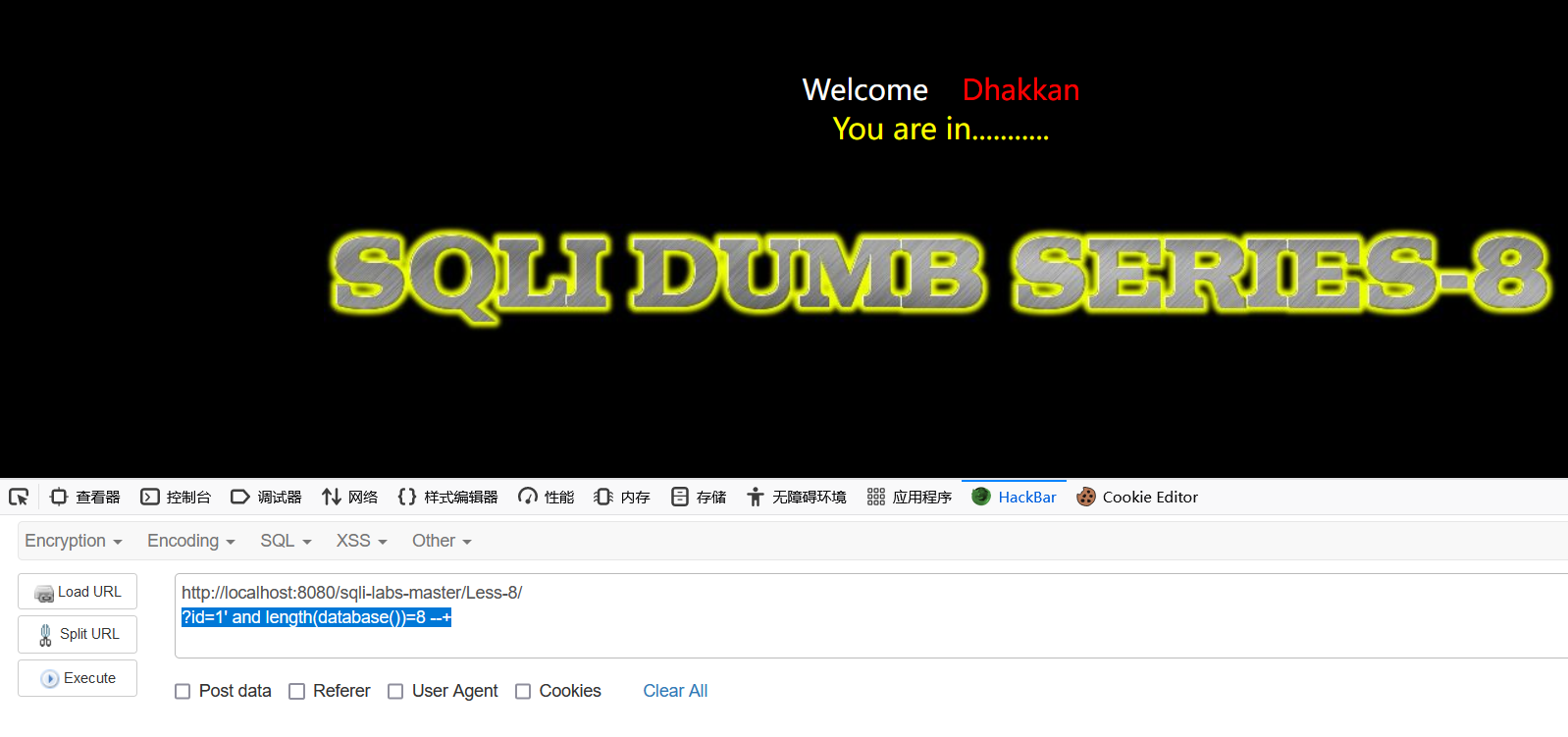 猜数据库长度(页面窗口转了10s,说明长度为8)
