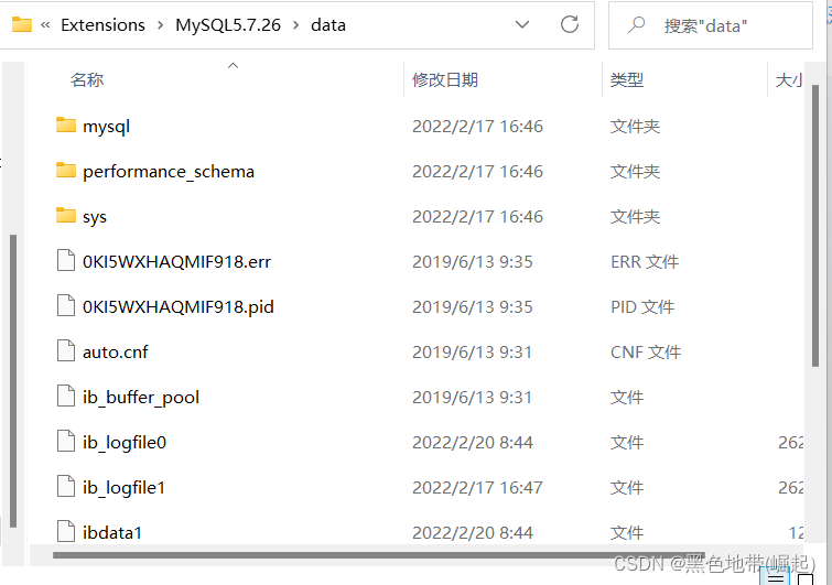 进入到安装路径下的phpstudy_pro\Extensions\MySQL5.7.26\data中